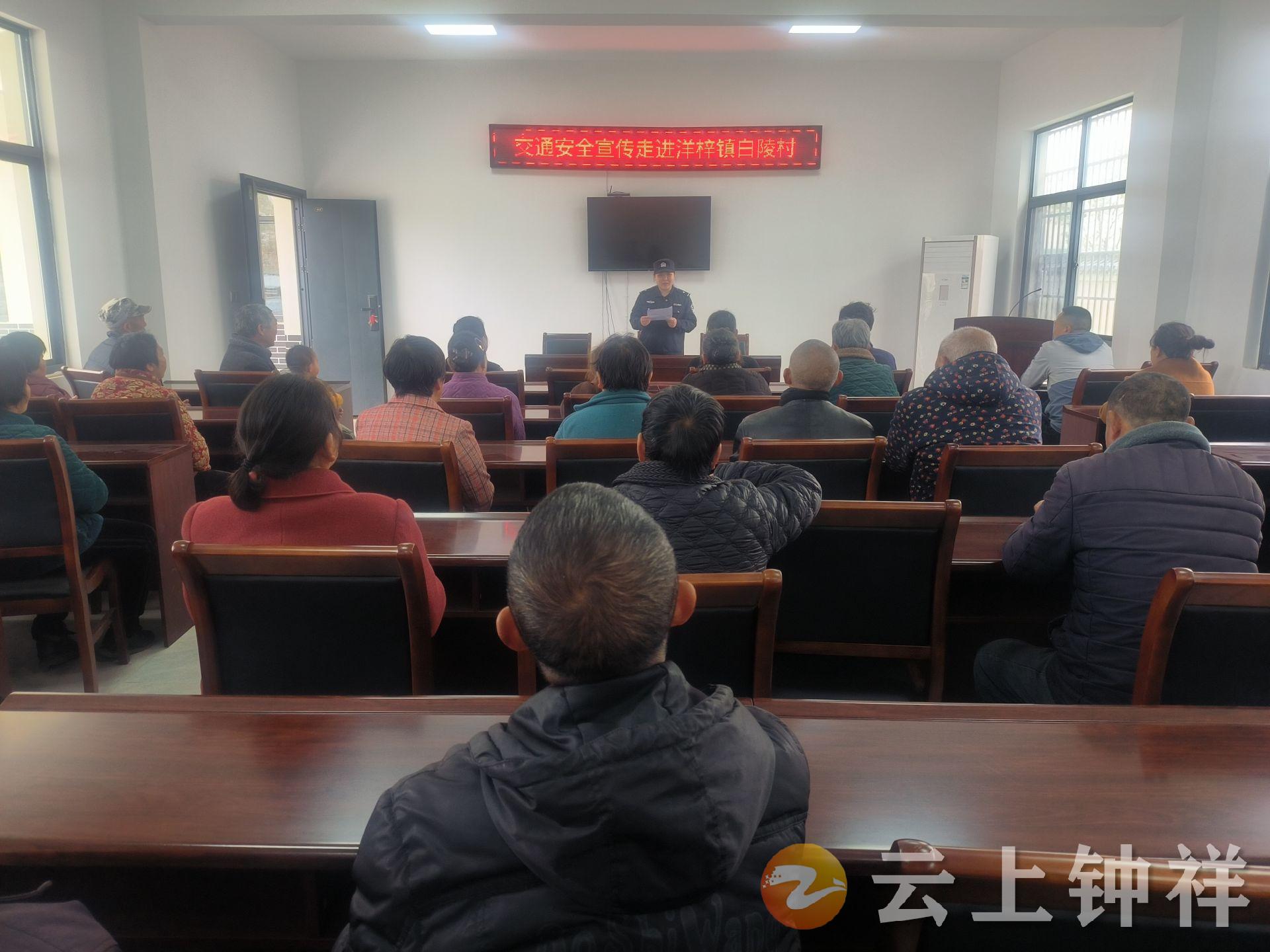 3月31日,钟祥市公安局交通管理大队联合洋梓派出所走进洋梓镇白陵村,开展交通安全进乡村宣传活动,将平安知识送到村民家门口,进一步提升村民的交通安全意识,预防和减少道路交通事故的发生。