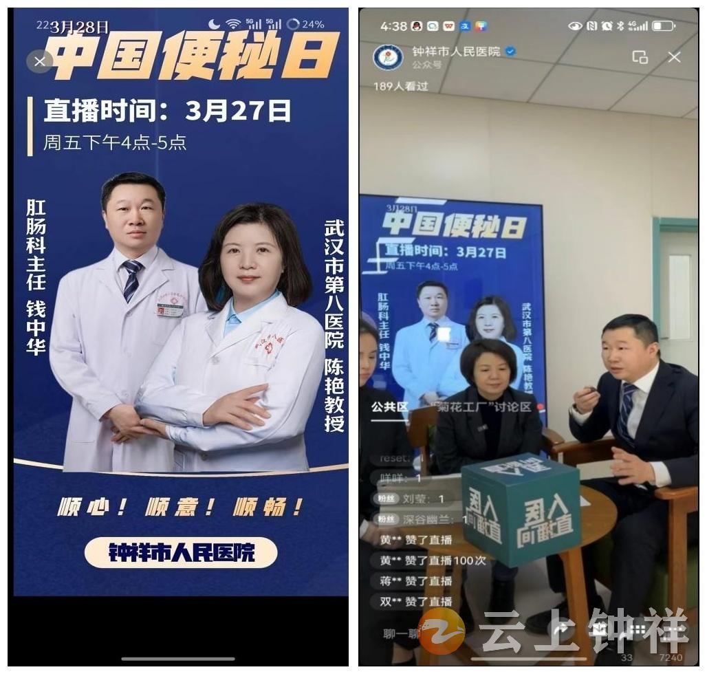 近日,钟祥市人民医院肛肠科联合康复科、中医科、女性健康管理中心成功举办以“顺心!顺意!顺畅!”为主题的“中国便秘日”健康科普与公益义诊活动,活动采用“线上直播+线下义诊”联动模式,为市民提供全方位、专业化的肠道健康服务。