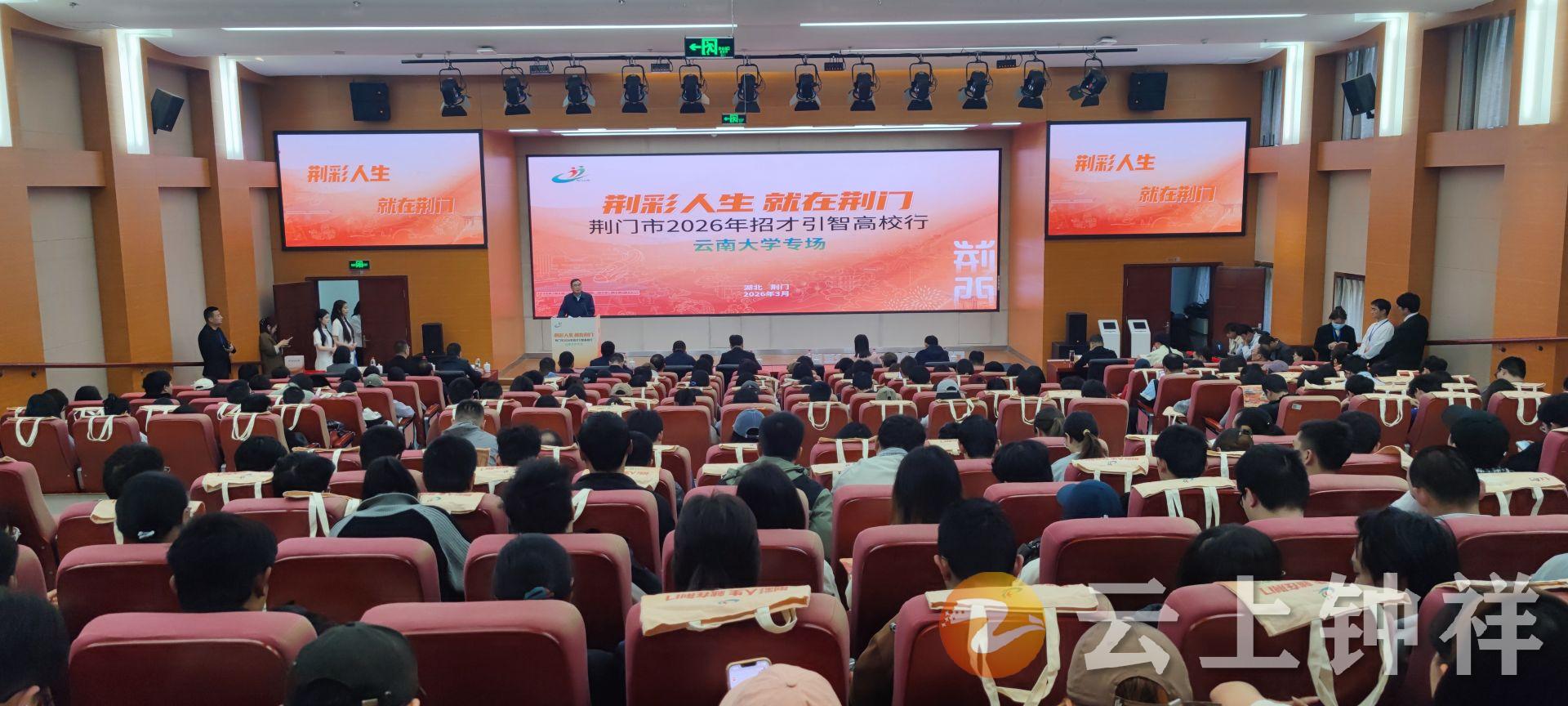 3月30日至31日,“荆彩人生 就在荆门”荆门市2026年招才引智高校行活动走进云南省昆明市。钟祥市携本地多家重点企业,160个优质岗位,走进云南大学、昆明理工大学,精准对接高校人才,为钟祥高质量发展注入青春动能。