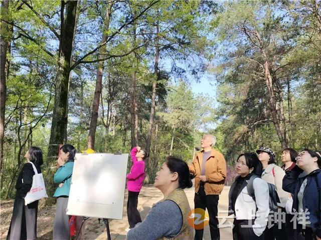 清晨,学员们携带画具集合出发,车厢内歌声阵阵、暖意融融。此行第一站为钟祥“城市后花园”盘石岭风景区,抵达目的地后,市美术家协会副主席龚云飞为学员们讲解户外写生技巧,并现场示范创作,学员们认真聆听、积极学习。课后,学员们分散寻找视角,专注投入创作;诗词爱好者吟唱经典古诗词,短视频达人记录精彩瞬间,现场氛围活跃。