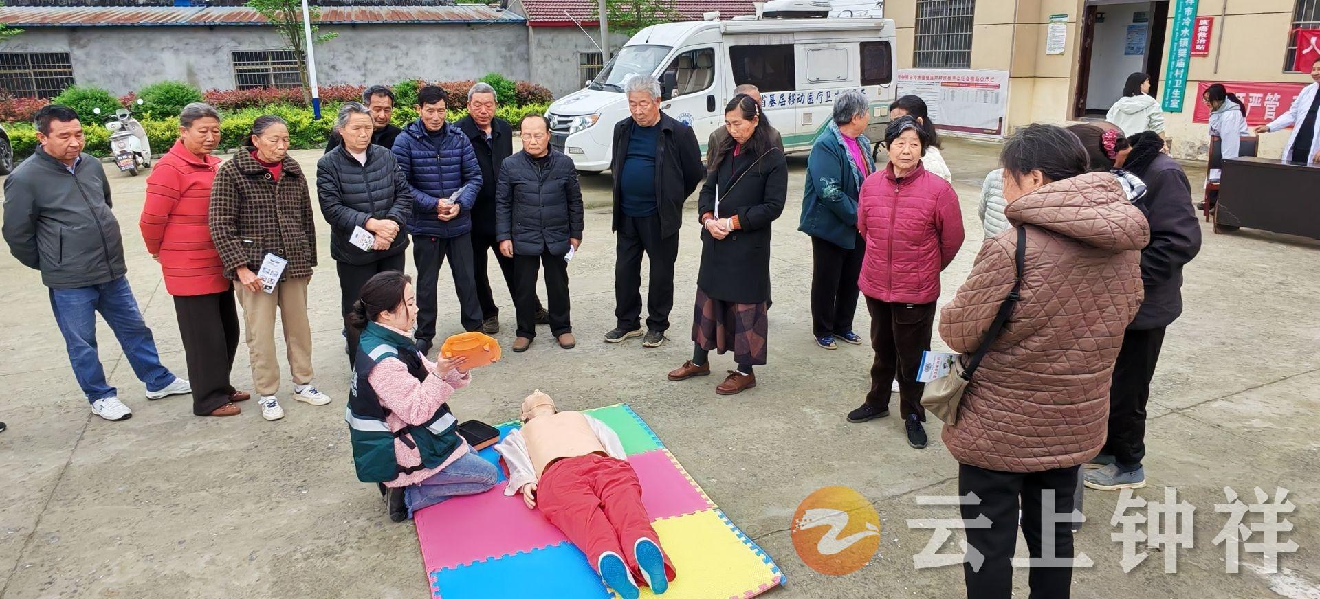 4月16日,钟祥市紧急医疗救援中心联合冷水镇中心卫生院走进樊庙村,开展健康服务活动,将优质医疗服务和急救技能培训送到村民家门口。