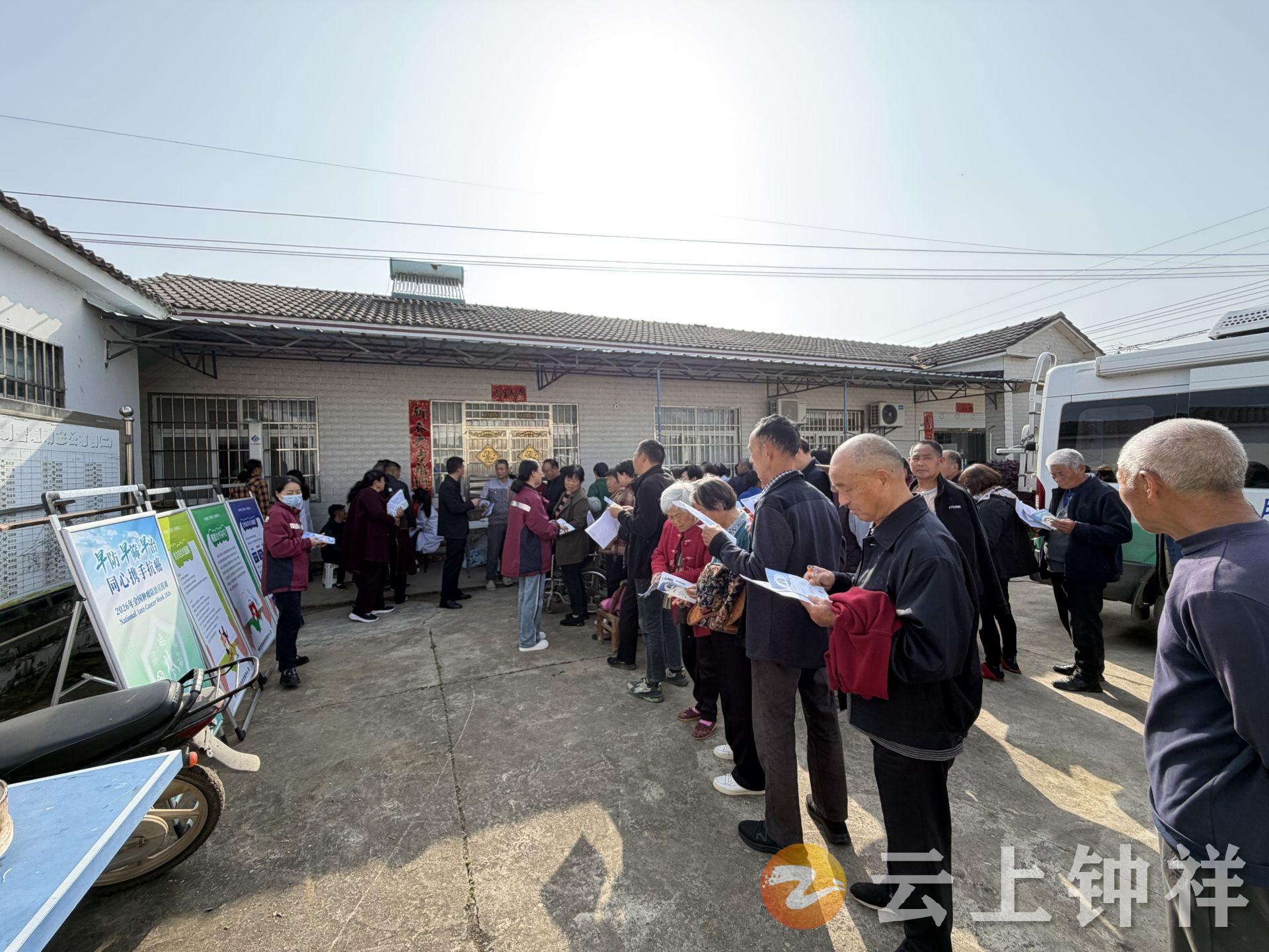2026年4月15日至21日是第32届全国肿瘤防治宣传周。近日,钟祥市疾病预防控制中心联合九里回族乡卫生院以“早防早筛早治 同心携手抗癌”为主题,走进李家台村开展基层义诊与肿瘤防治科普宣传活动。