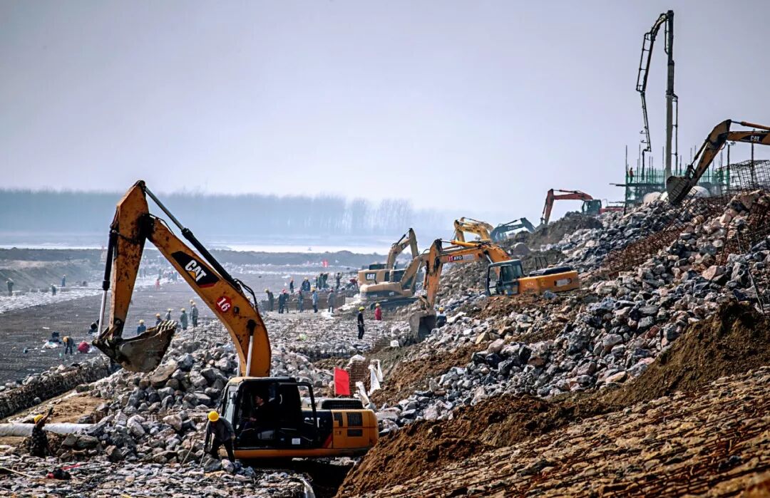 碾盘山水利枢纽工程位于钟祥市汉江干流河段,是国家172项节水供水重大水利工程之一,工程以发电、航运为主,兼顾灌溉、供水,同时为南水北调引江济汉工程良性运行提供条件。工程预算总投资66.356亿元,总工期52个月。图为施工现场。