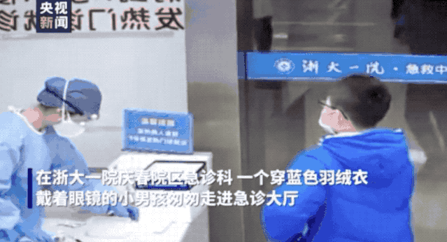 一个小男孩走进急诊大厅
