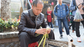 莫愁村的众多老匠人在制作糕点,神情专注,我猜一定因着特别的热爱吧。