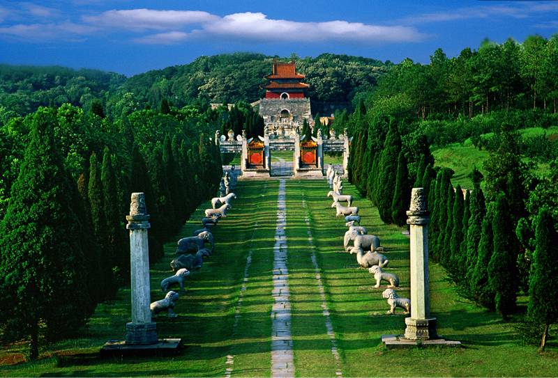 金瓶形的外罗城、九曲御河、龙鳞神道、琼花双龙琉璃影壁和内外明塘等都是明陵中仅见的孤例。